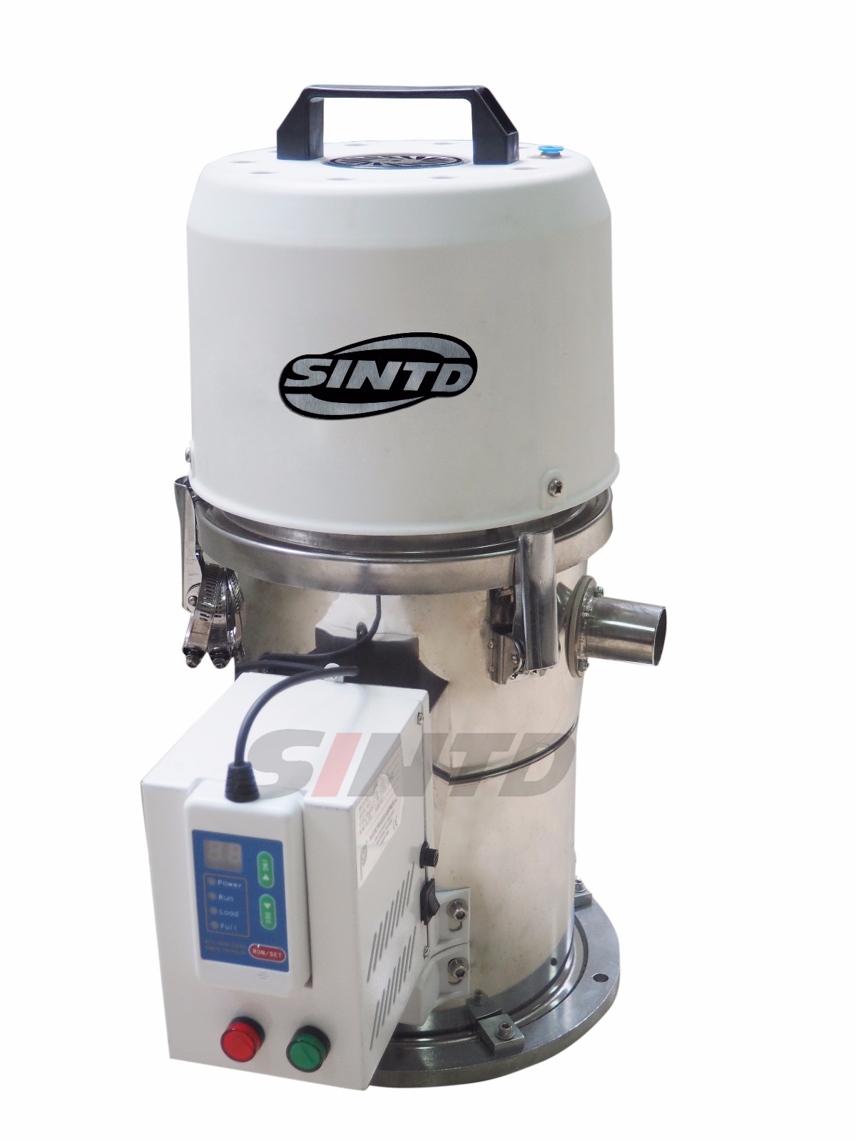 TAL-U series Euro type self-contained vacuum hopper loader uses stainless steel hopper to avoid material contamination. This self-contained hopper loader is characterized by polished finish and attractive appearance. Sound-proof motor cover helps reduce the noise level. A top handle enables convenient movement.